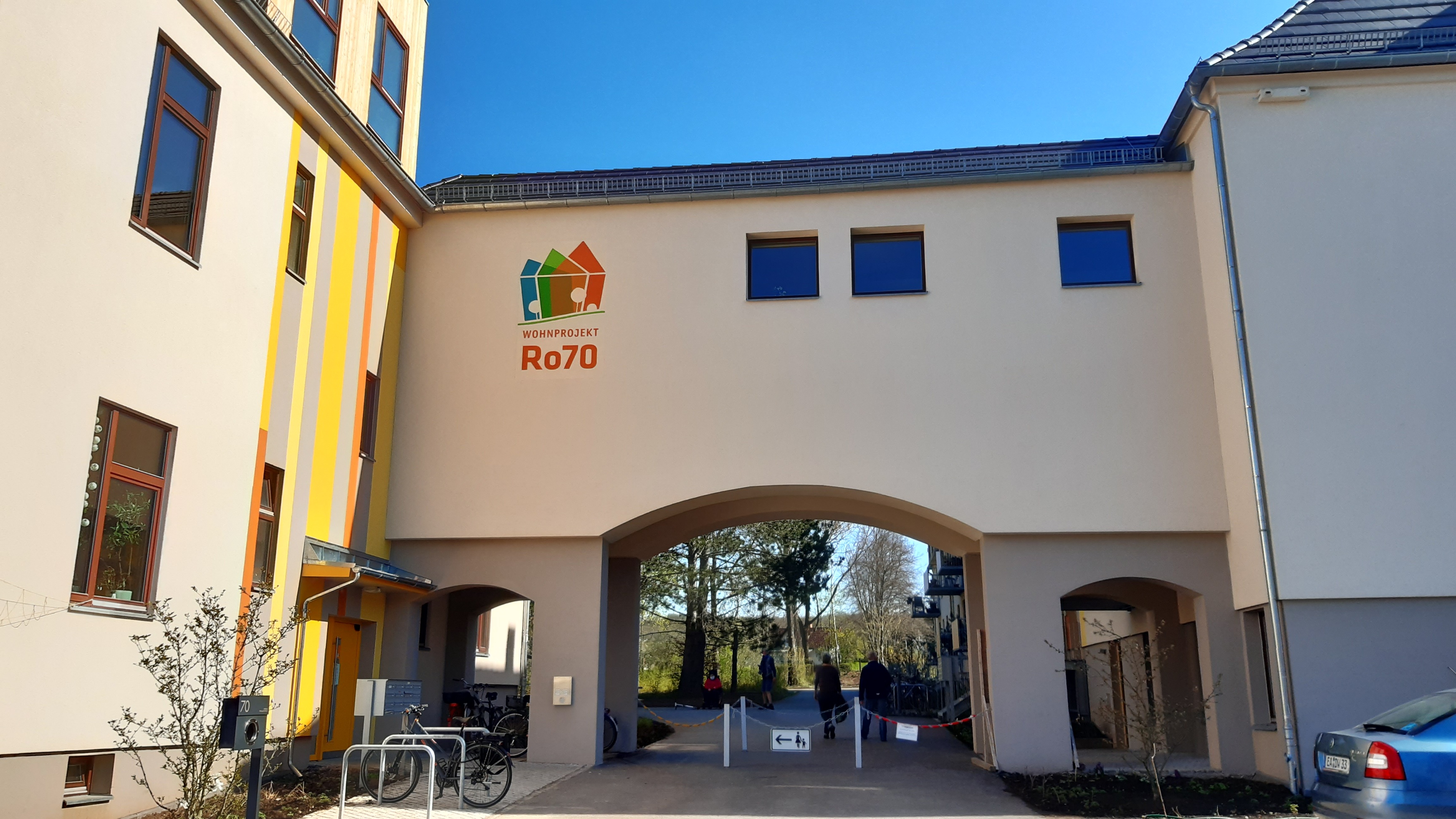 In der Genossenschaft „Wohnprojekt Ro70 eG“ haben sich engagierte Menschen zusammengefunden, um das ehemalige Weimarer Krankenhaus in das größte generationenübergreifende Wohnprojekt Thüringens zu verwandeln. Seit 2020 leben hier rund 200 Menschen in einer lebendigen Nachbarschaft, abseits vom eher anonymen Wohnen im Mietverhältnis und Eigentum. Der Wunsch nach Austausch, Kommunikation und gemeinsamem Tun ist dabei ausschlaggebend, aber auch das Interesse an der Mitgestaltung des Ortes, an dem man leben möchte. Grundstück und Gebäude sind genossenschaftliches Eigentum und damit dem renditeorientierten Immobilienmarkt dauerhaft entzogen.